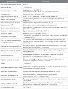 • Встроенный тормозной прерыватель в номиналах до 22 кВт (свыше 22 кВт встроен в моделях с индексом BU или применяется внешний опциональный)